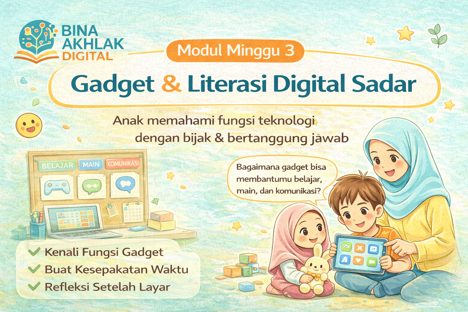 Modul Minggu 3 – Gadget & Literasi Digital Sadar adalah panduan praktis untuk orang tua & pendidik agar: